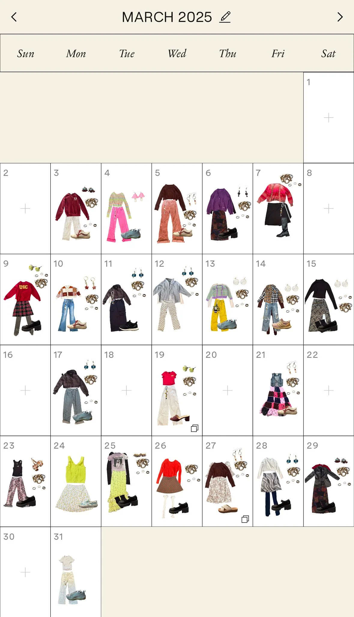 Then, I put together the outfits that were already in my Notes app folder and added them to my calendar based on the date of the photo taken. Sure enough, the app generated another set of data based on my closet usage. There is nothing I love more than some data on myself (stay tuned for my 2025 boba wrapped).